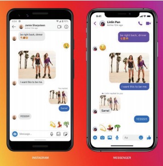 [그림 1] 페이스북 메신저와 인스타그램 DM을 통한 메시지 전송 화면 <출처 - Facebook Newsroom>
