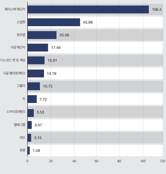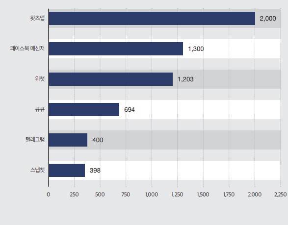 [그림 2] 월간 이용자 수 기준 미국에서 가장 유명한 모바일 메신저 애플리케이션 <출처 - Verto Analytics, 2019a>
